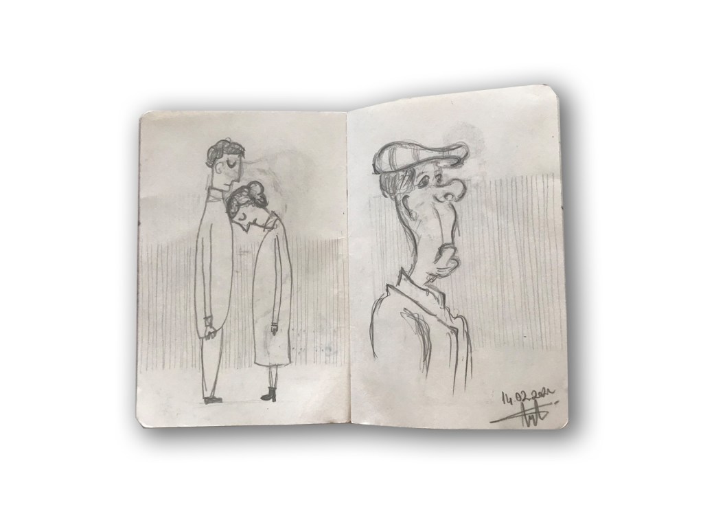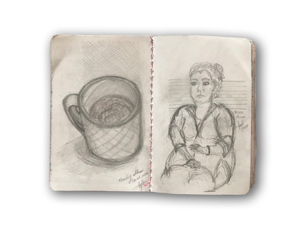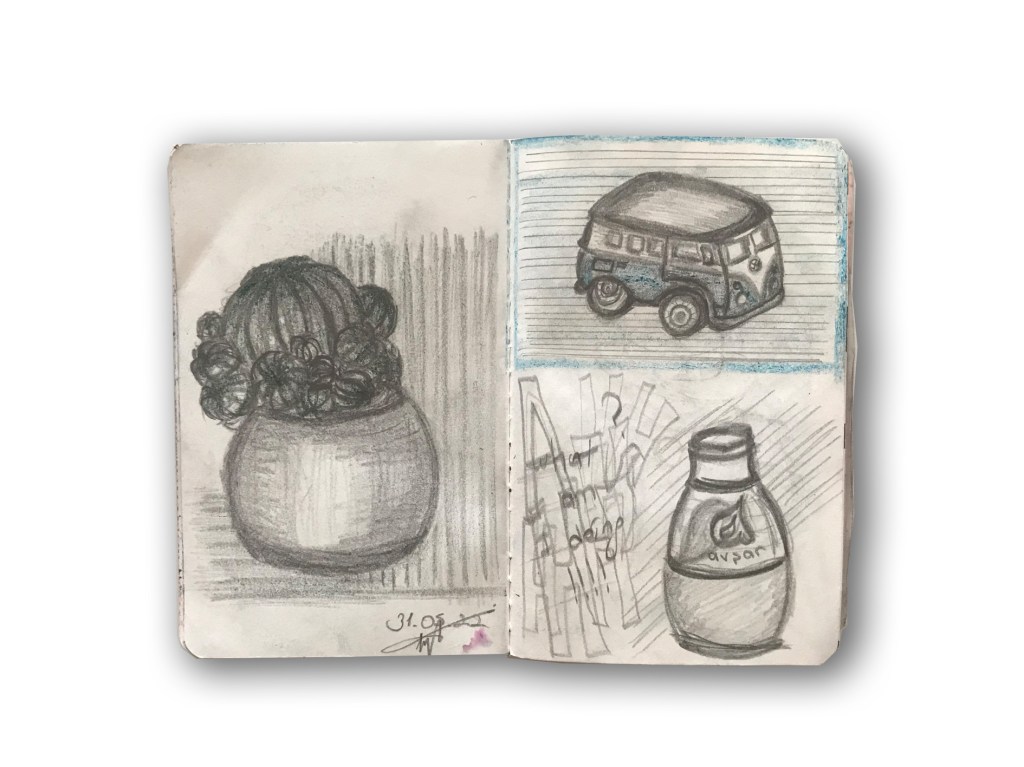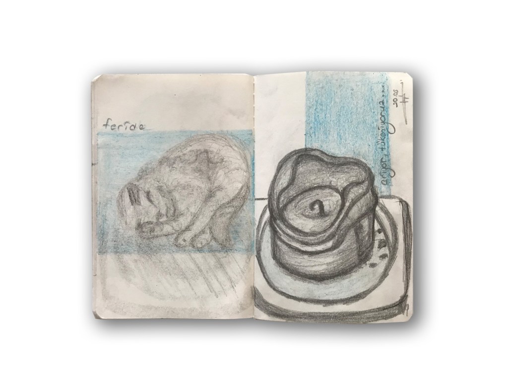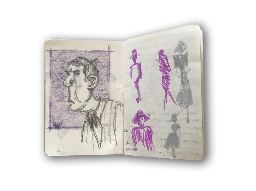 So, I decided to follow the suggestion I gave to my student and began to let my work be ugly. I took a sketchbook and drew without thought to train myself to fight perfectionism. I kept drawing without criticizing my sketches. I had never finished a sketchbook before and never had more peace in my art. So here is my sketchbook and suggestion for all,