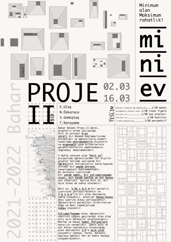 Briefly, the project aimed to make students consider ergonomics and human anthropometric models in their designs while preparing them for the main task of second-year studios. Students were asked to form groups of two and design a tiny house with dimensions of 3 m x 6 m. Each house was expected to have a bedroom unit, living and studying areas, a kitchenette, a bathroom, and open spaces.
