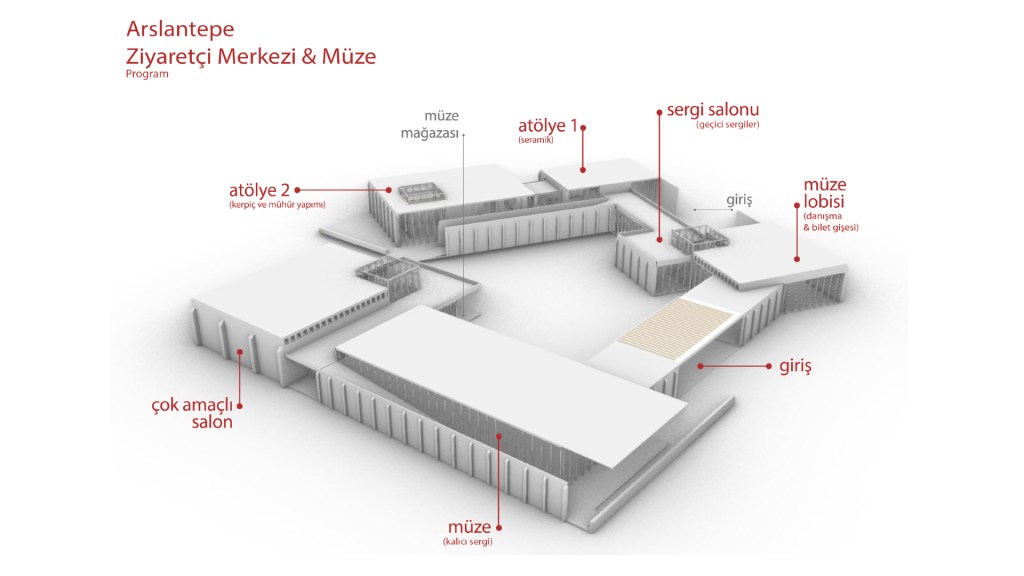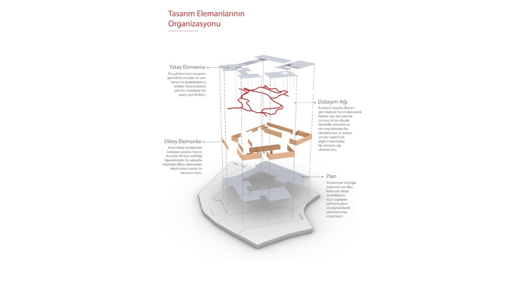Associate Professor Aysun Tuna and her team have conducted the project on the management plan preparation of the Arslantepe archeological site for the UNESCO nomination process. During the design process of the master plan, it was seen that there was a necessity for a museum/visitor center near the Arslantepe Mound. With that idea, Aysun Tuna wanted me to join the project team and design the concept project for the museum. I have started to design in consultation with Aysun Tuna and Prof. Dr. Marcella Frangipane, who was the head of the excavation team of the Arslantepe Mound and lecturer at Italy Rome La Sapienza University.
