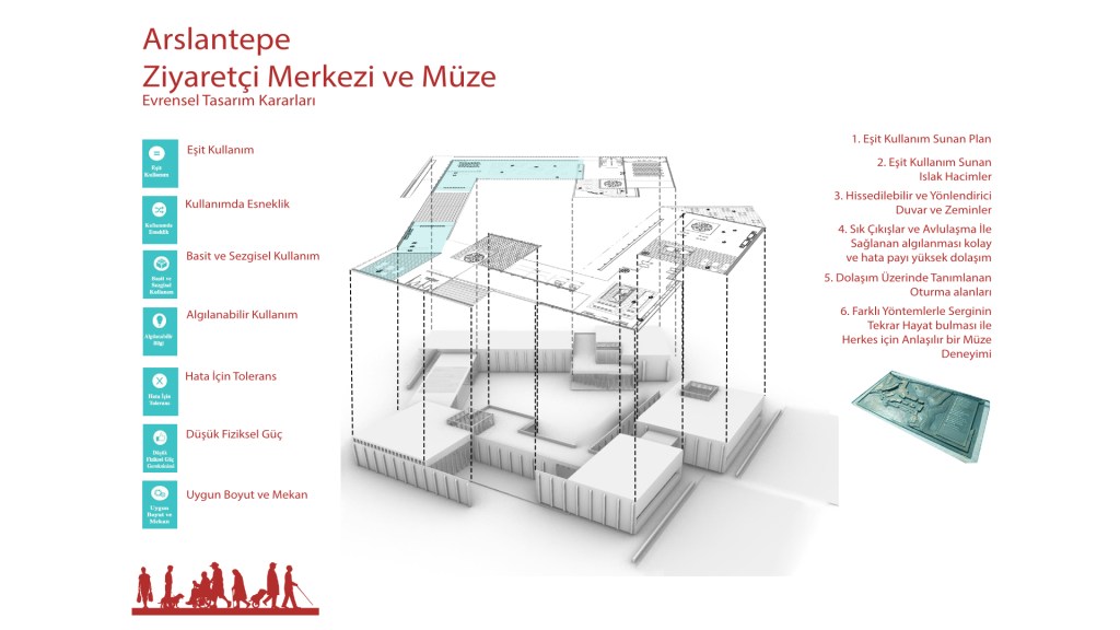 In the design process, a colleague of mine, Yasemin Hekimoğlu, helped with the interior design of the museum, and Aysun Tuna always contributed with her knowledge and Ayşe Gülan Çelebi contributed to the project with her illustrations. During the design process, we were honored with the news that Arslantepe Mould has been added to UNESCO World Heritage List. Later on, Aysun Tuna and I got an invitation from General Directorate for Cultural Heritage and Museums, who wanted us to present our museum design. In December 2002, we presented our design to the general director and his team; our concept project is in a consideration process in the directorate to be constructed.